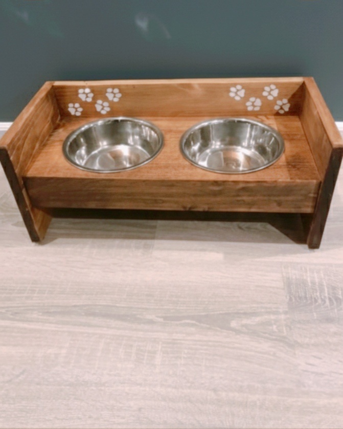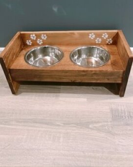 Prodám stojan na misky opálené a lakované 50x20x15 Možnost i jiný vzhled V ceně misky