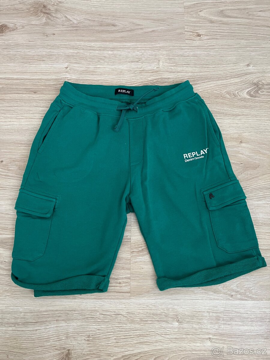 Zelené teplákové kraťase, zn. Replay, vel: 142 cm, délka: cca 40 cm, v pase na gumu se šňůrkou. Nošené, ale dobrý stav. Možnost předání i osobně nebo přes zásilkovnu.