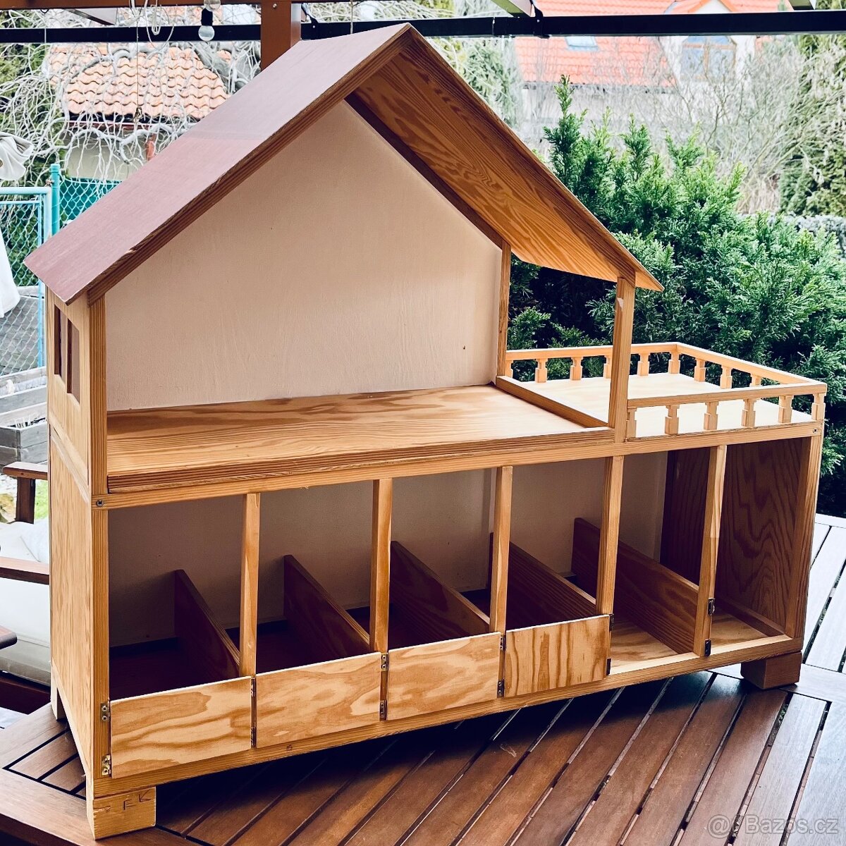 Prodám ručně vyrobenou stáj / domeček pro panenky v bezvadném stavu. Dcerka ji využívala pro Schleivh koně:) v: 80, š: 92 h:31,5 cm Osobní převzetí v Hradci Králové nebo Pardubicích.