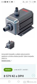 Nejvýkonnější vnější čerpadlo od EHEIMu s výtlakem téměř 4 metry, 3400 l/hod.Nepoužité s důvodu neuskutečnění plánováného projektu. Zaslání Balikovnou, možnost dobírky. Kontakt mailem