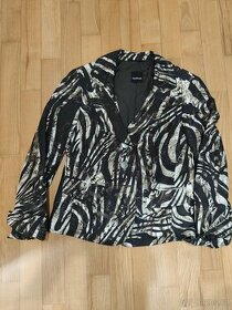 Dámské sako německé značky Taifun.Téměř nenošené,v perfektním stavu velmi efektivní vzor i materiál. Na rukávu z ozdobných kamínků vyšité logo. Vše krásně vypracované,sako se hodí jak na běžné nošení, podle zvolených doplňků je skvělé i na společenské příležitosti. Viz foto. Doplňky nejsou součástí nabídky, slouží pro představu.Lehce projmuté.Velikost L .Rozměry ramena 40 cm, prsa 48,celková délka 60 cm, rukávy 60 cm. Pořizovací cena vysoká.Zakoupeno v Praze v domě značkové módy.Osobní odběr v Praze 6 jinak zasilkovna za 40 Kč.