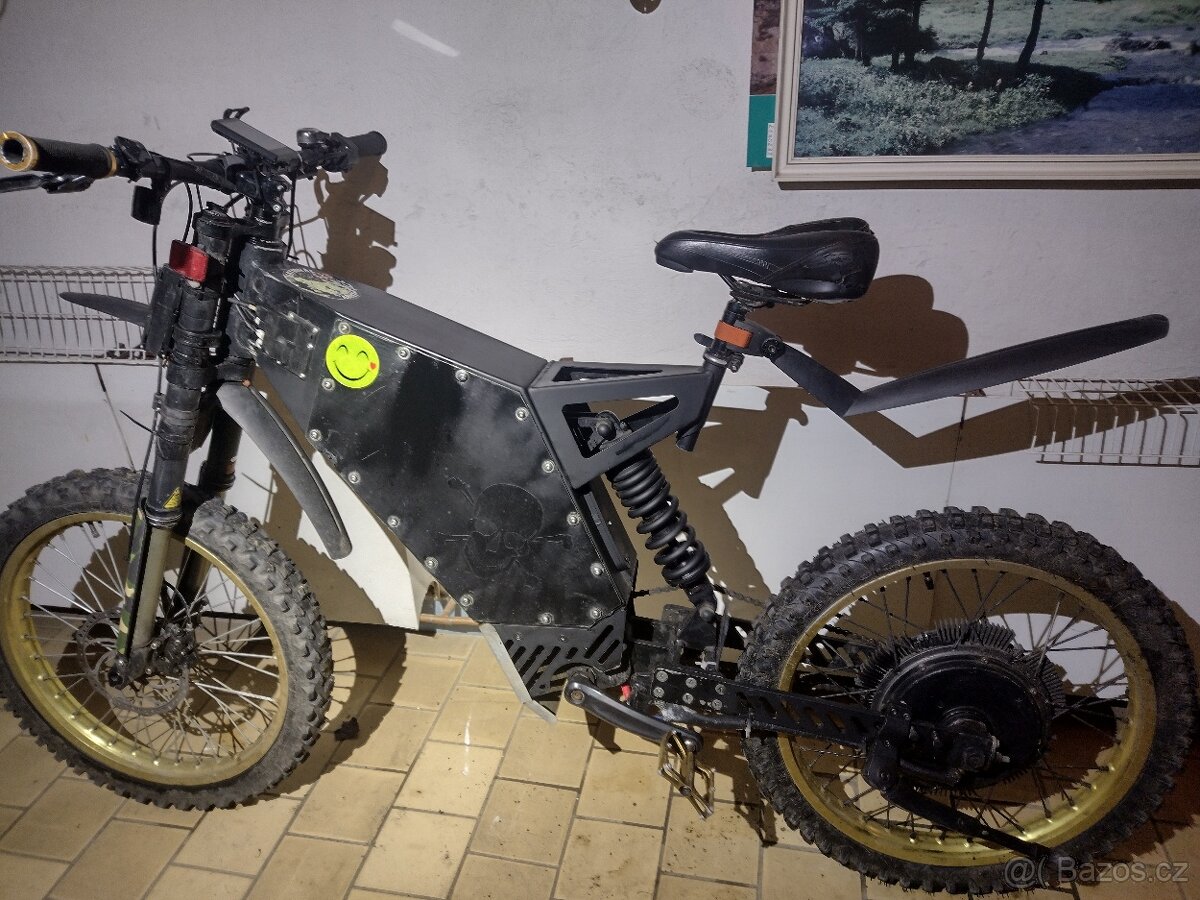 Jede jako elektromotorka ,batery pack12S 128,50,4V ,20A z roku 2022,motor QS 205 4T,14KW,přední brzda hydraulická kotoučová ,zadní brzda rekuperační ,kliky-Prowheel ,nová zadní pneu a duše-starou přidám, max.rychlost 60km/h, dojezd silnice 60km,dojezd terén40km,5volitelných stupnů výkonu ,možno doplnit nosič a velký zadní blatník-jako silná elektrobabeta.