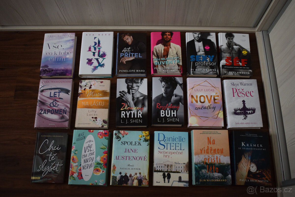 Prodám různé romantické knihy: 1) Šéf (tvrdá vazba) - Vi Keelandová - jednou přečtená, velmi dobrý stav. Cena 170 Kč 2) Sexy profesor (tvrdá vazba) - Vi Keelandová - jednou přečtená, velmi dobrý stav. Cena 170 Kč 3) Anti-přítel - Penelope Ward - jednou přečtená, velmi dobrý stav. Cena 100 Kč 4) Můj nejmilejší suvenýr - Penelope Ward, Vi Keelandová - jednou přečtená, velmi dobrý stav. Cena 140 Kč 5) Truly - Ava Reen - jednou přečtená, velmi dobrý stav. Cena 100 Kč 6) Vše, co k tobě cítím - nová, nečtená. Cena 100 Kč 7) Nové začátky - Lilly Lucas. jednou přečtená, velmi dobrý stav, trochu pomačkaný přebal knihy. Cena 100 Kč 8) Rozzlobený bůh - L. J. Shen - jednou přečtená, velmi dobrý stav. Cena 180 Kč 9) Zlomený rytíř - L. J. Shen - jednou přečtená, velmi dobrý stav. Cena 180 Kč 10) Leť & zapomeň - Nena Tramountani - nová, nečtená. Cena 100 Kč. 11) Krámek se starožitnostmi - Paula Brackston - nová, nečtená. Cena 120 Kč 12) Na viděnou příští léto - Elin Hilderbrand - nová, n