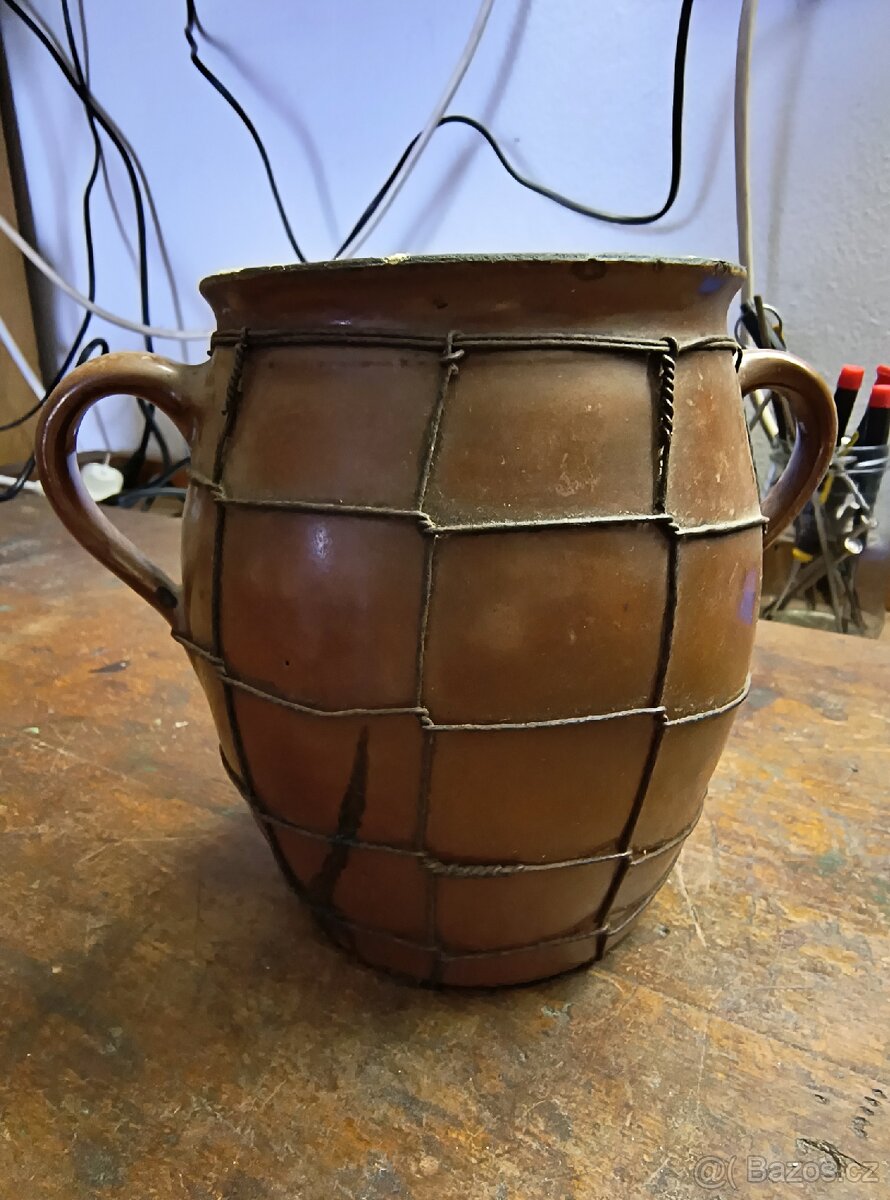 Prodám starožitný džbánek opravený dráteníkem.