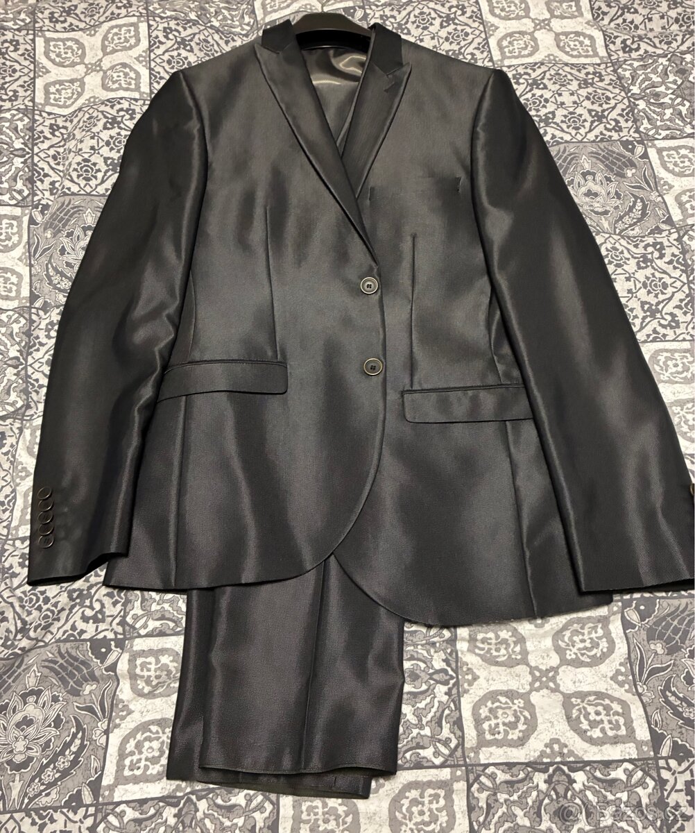 Prodám oblek málo používaný,v hezkém stavu,vyčištěný,včetně vestičky.. Velikost viz foto