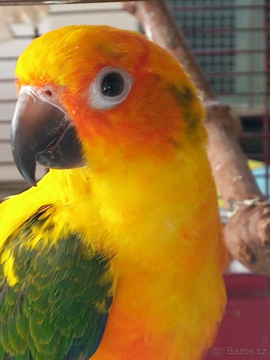 Prodám aratingu sluneční. 6 měsíců samec DNA, kroužkovaný.