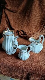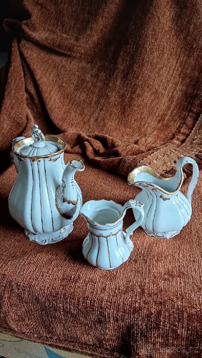 Prodám starou porcelánovou soupravu 4ks, tj. konvičku na čaj -výška je 20 cm a k tomu ještě na smetanu, malou konvičku a cukřenku . Cukřenka má poškozené víčko, ale ostatní v pořádku. Cena za vše 1000 Kč. Další informace popř na telefonu 604 652 668 a nebo jsem i na WhatsAppu . Posílám poštou a nebo po dohodě osobní předání