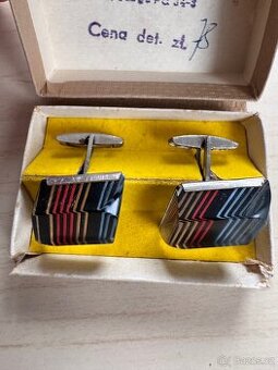 Nabízím retro manžetové knoflíčky z období cca 70.–80. let. Zajímavý geometrický design v kombinaci barev, velmi pěkný dobový doplněk. Součástí je i původní krabička. Knoflíčky jsou ve slušném stavu, nesou jen drobné známky stáří. Vhodné pro sběratele retro doplňků nebo jako originální doplněk k obleku.