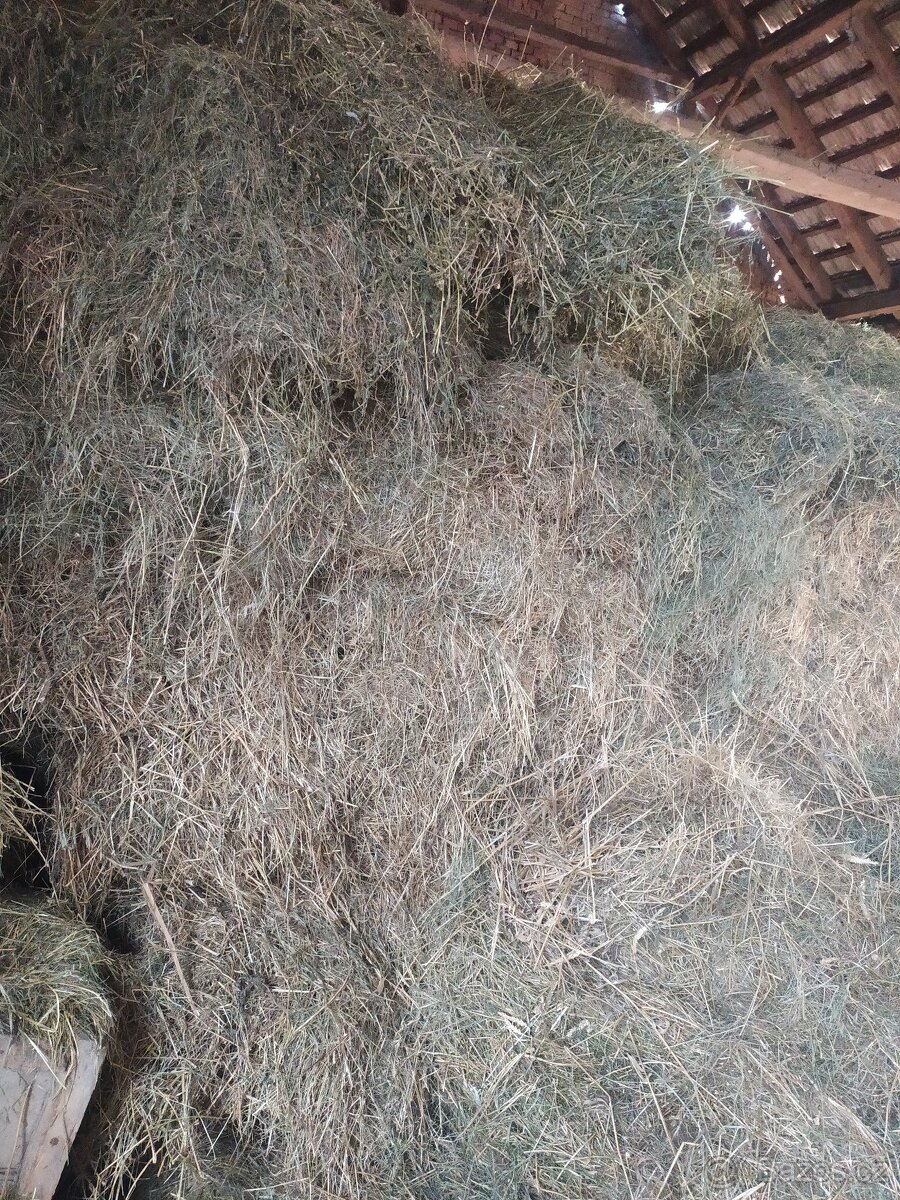 Prodám loňské seno v malých balíkách. Lisovány nízkotlakým lisem. Rozměr cca 100x50x40cm váha +-cca 8kg Je to luční travina + lucerka Cena za balík