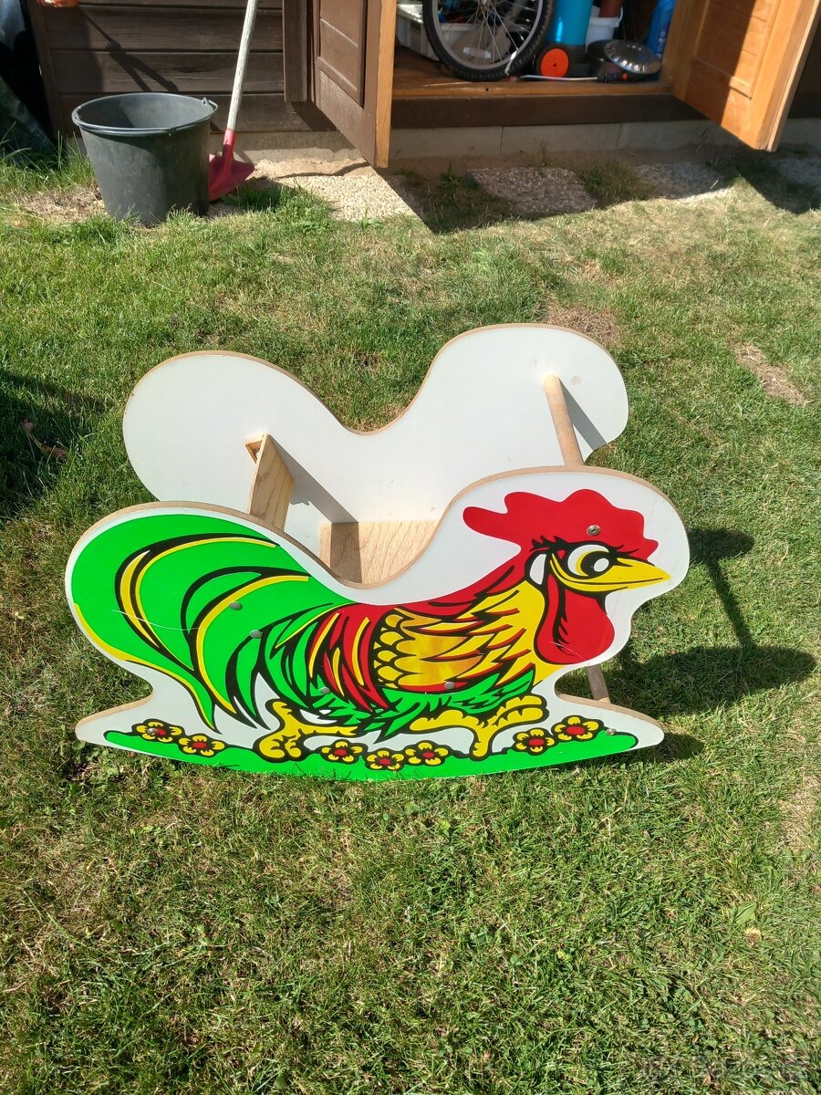 Prodám dřevěného houpacího kohoutka,velmi dobrý stav. Rozměry kohoutka:délka 75 cm, šířka 31 cm, výška 53 cm.