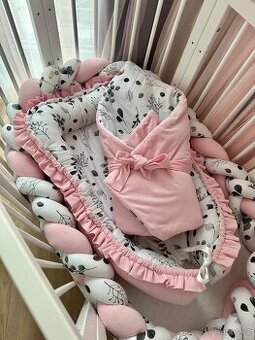 Set do postýlky - mantinel, hnízdečko a zavinovačka. Značka Šitíčko pro miminka. Po jednom dítěti, bez vad. Vzhledem k velikosti prosím osobní odběr v Plzni.