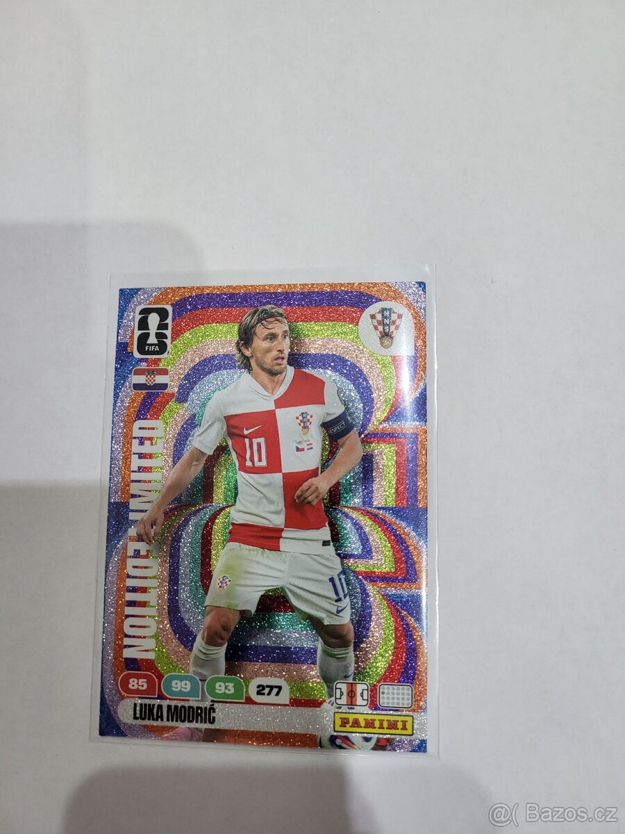 Karta Luka Modrić – Limited Edition (s duhovým „rainbow“ pozadím) z nejnovější série Panini Road to FIFA World Cup 2026.karta byla vložena hned do folie