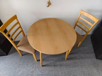 Kulatý jídelní stůl+ 2 x čalovnená jídelní židle - vhodné do malého bytu. Pouze osobní odběr v Lanškrouně, cena 2000 Kč