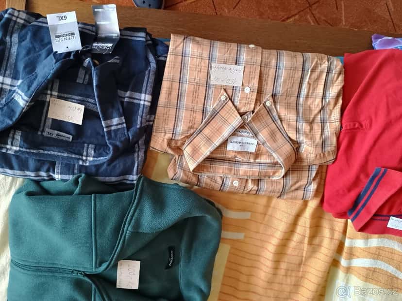 Cena: V textu. Nabízím nenošené košile s dlouhým rukávem á 150,- Kč, polokošile s krátkým rukávem á 50,- Kč, zelená mikina na zip velikost 4 XL za 200,- Kč z důvodu nevyužití.