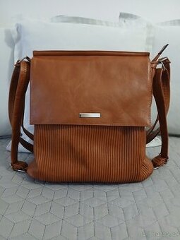 Nabízím velkou kabelku, koženková, hnědá barva. Rozměry: výška 35 cm, šířka 34 cm, hloubka 12,5 cm. Lze nosit přes rameno, křížem přes rameno, jako batoh i jen tak v ruce. Záleží jak jsou nastavené popruhy. Kabelka má hlavní zip, plus zavření na patenty v předu. Zvenku vzadu kapsička na zip. Uvnitř je kabelka rozdělena na 3 velké komory, z toho jedna na zip. Další dvě menší kapsičky z toho jedna na zip. Kabelka je nenošená, jako nová!