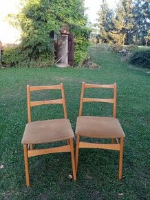 2x židle s čalouněným sedákem. Nerozvrzané, vhodné k renovaci. Cena za obě.