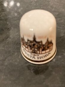 Porcelánového náprstky: SVATÁ HORA, PRAHA a květiny. Výška cca 2 cm. Pro sběratele i jako dekorace.