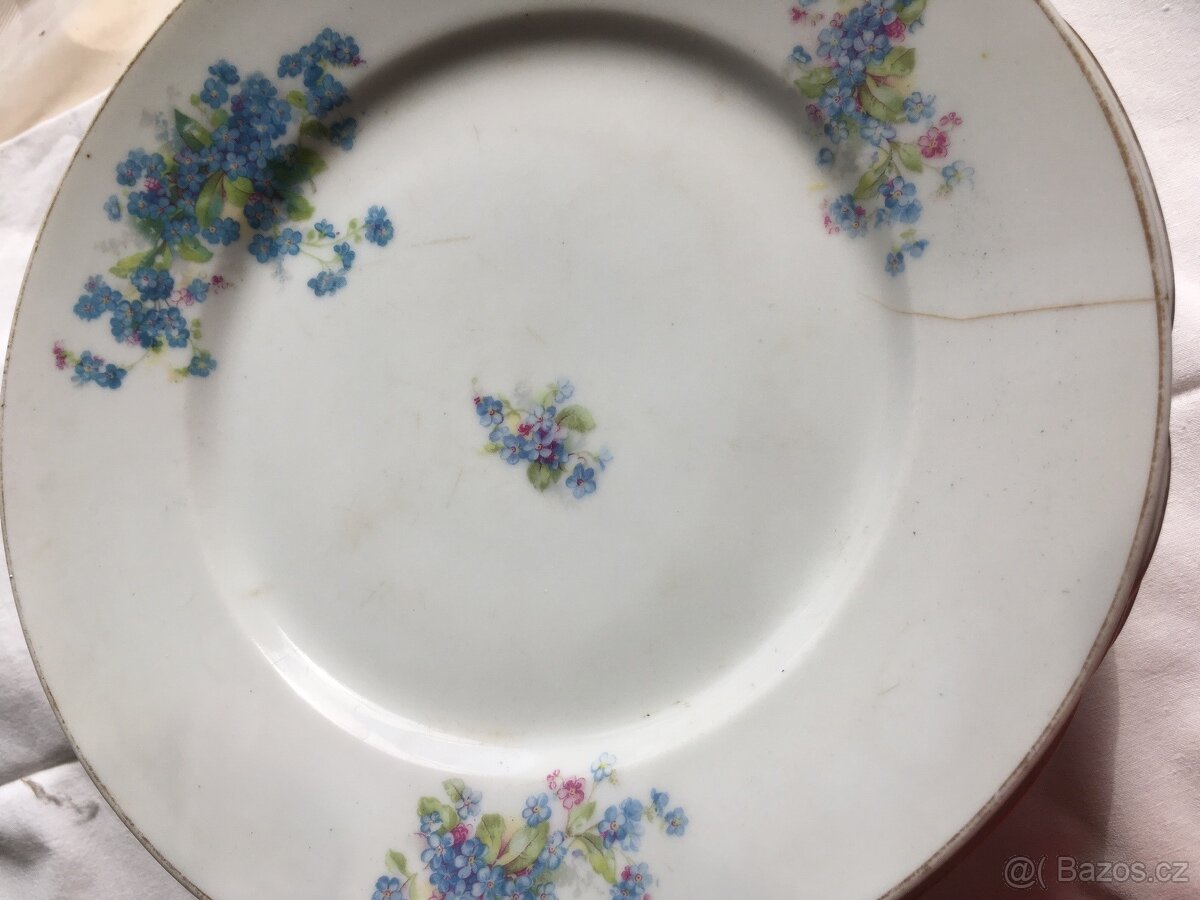 Cena: Nabídněte. Starý talíř s pomněnkami -poškozený,značený viz,foto