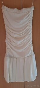 Šaty jsem kupovala na svatbu, jako popůlnoční, nakonec jsem je nepoužila. Jsou krasné, nad kolena. Zdobené kamínkovým pásečkem. Nejsou čistě bílé, spíše taková slonová kost. Objevila jsem na nich drobný flíček, viz foto, na postavě není vidět, šaty mají sukni řasenou, objevila jsem při detailním prohlížení...vel by odpovídala ca vel 38/40, rozměry viz foto. Více info na tel. Možnost osobní odběr v Ostravě nebo zásilkovna +80kč, balíkovna +70kč.