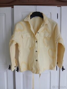 Prodám dámskou riflovou bundu . Sedne na vel. M/ L/ XL. Přes prsa 62 cm. Délka 64 cm. Barva citronová žlutá.