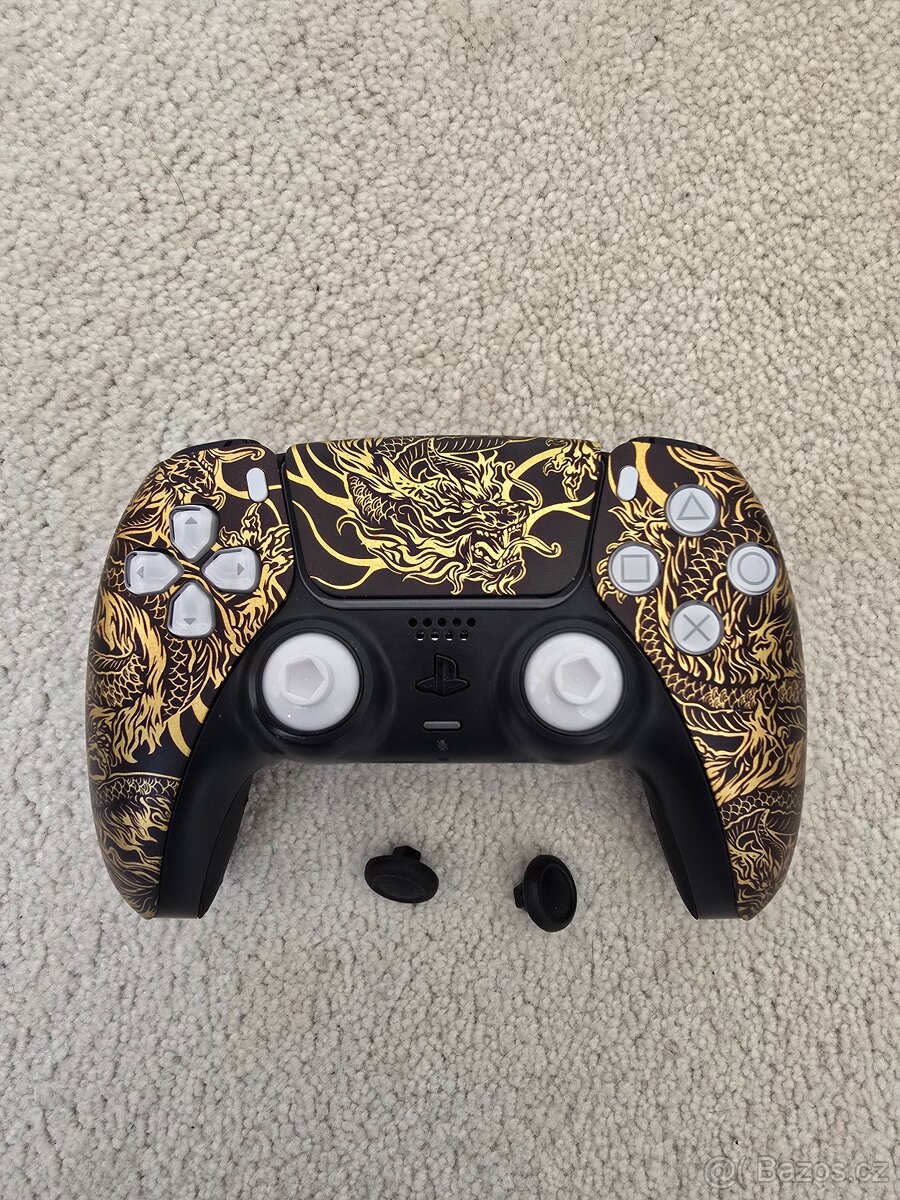 Prodam ovladač na PS5, original. Upravený. Změna vzhledu - luxusní design Změna zadního krytu - protiskluzová Změna kloboučků - úprava výšky pro lepsi aim Mouseclick - upravené triggery na mikrospínače. Krok L2 a R2 jen cca 1.5mm Ovladac je zánovní, odehráno minimum, aktualizován, kalibrován, vyčištěný... O ceně nesmlouvám. Super stroj za minimum. Jen dily cenově vychází víc nez ovladač samotný.