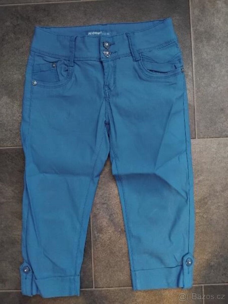 nabízím dívčí 3/4 kalhoty modré barvy, nošené, na zip + 2 knoflíky, dvě kapsy vepředu, 2 kapsy vzadu, délka kalhot 59 cm, pas 32 cm, možnost osobního odběru v Blansku nebo v Senetářově, jinak cena + poštovné