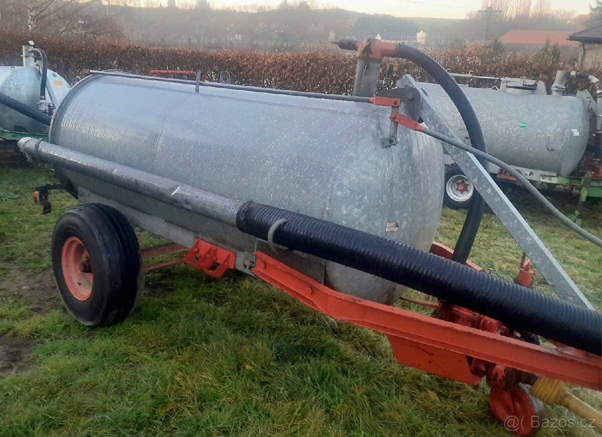 Jednoosý fekální přívěs 4000 litrů pozinkovaný. Uvnitř čistý, bez koroze, možno nahlédnout, zadní víko je pootevřené. Vývěva neopotřebená. Sání vzadu nebo na boku, vývod s půlspojkou B. Nájezdová brzda. Možnost předvedení.