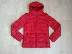 Červená bunda vel.XS-S moc hezká, teplá Délka 61cm, šířka přes prsa 45cm, rukáv od kapuce 73cm