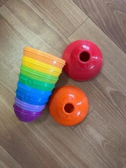 Skládačka s rolničkou se skládá z deseti barevných očíslovaných mističek. Děti mohou mističky skládat na sebe, vkládat jednu do druhé nebo třeba spojit dvě dohromady a kutálet je po zemi jako míček