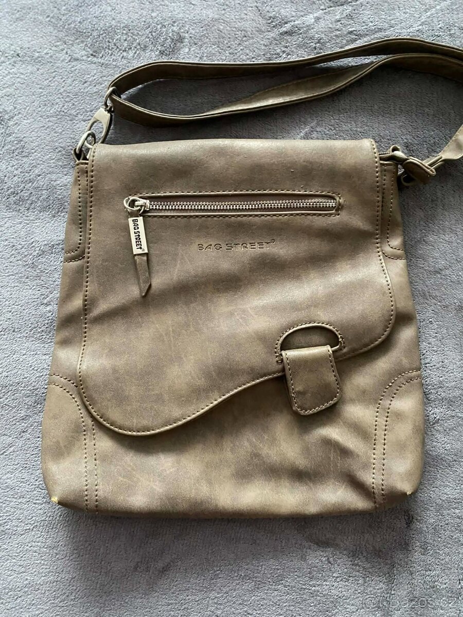 Prodám kabelku přes rameno, má spoustu kapes, hlavní zapínání na klopu a další kapsy na zip. Nastavitelný popruh, pohodlné nošení, vhodná na vycházky, do práce, víceméně kamkoli. Nošená, ale ve výborném stavu, bez poškození.