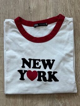 Tričko New York, Zara, velikost XS, top stav, bavlna, délka 54cm, ramena 39cm, šířka 45cm
