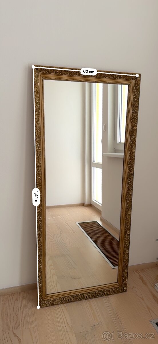 Nabízím zrcadlo ve zlaté dřevěném rámu. Cena 300,-Kč.