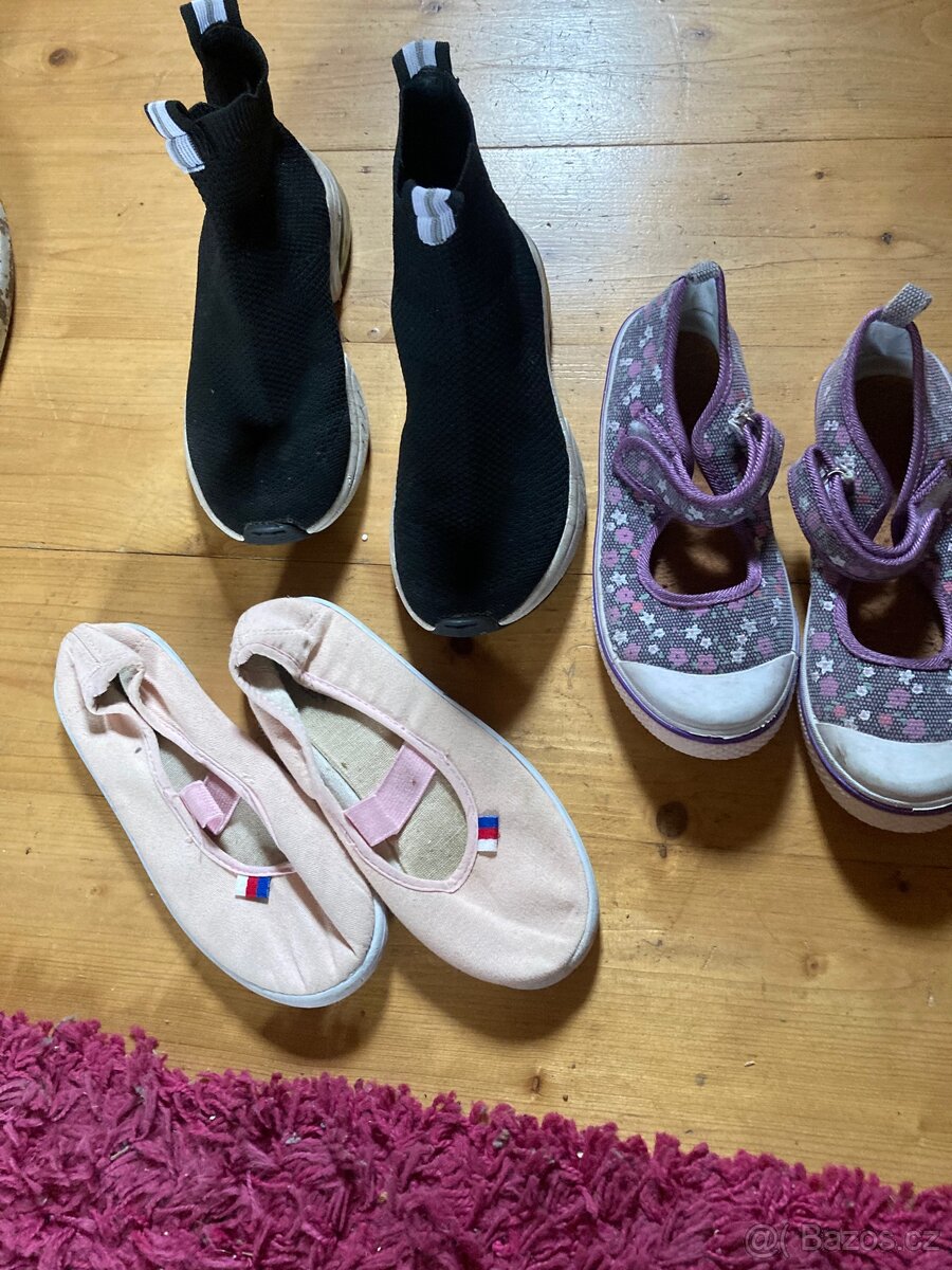 Jarní látkové kotníčkové boty černé barvy 55 kc a polobotky zapnuti přes nárt na suchý zip 50 kc Jarmilky přidám zdarma