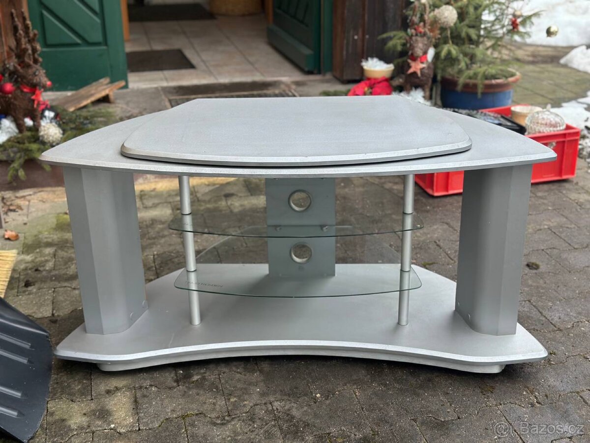 TV stolek se sklem TV stolek se skleněnými policemi a otvory na kabeláž. Vhodný pod televizi nebo audio/video techniku. 💰 Cena: 899 Kč
