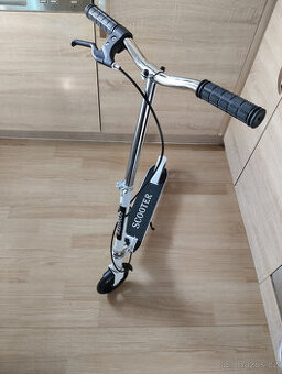 Prodám koloběžku,Je skoro nová.Nosnost je 100kg.Má přední i nášlapnou brzdu.Je velmi lehká.