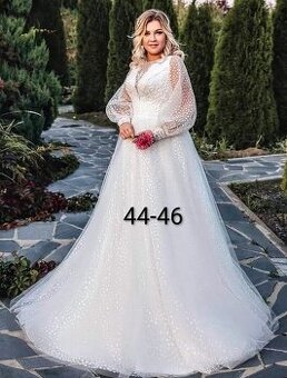 NOVÉ LUXUSNÍ svatební šaty VINTAGE. Šaty jsou ušité s volnými rukávy. Mají vyztužený korzet zdobený krajkou a bohatou tylovou sukni. Celé šaty jsou zdobené třpytivou aplikací. Korzet je na šněrování, takže se krásně přizpůsobí vaší postavě. Možnost vyzkoušení a většího výběru šatů v Brně. Vel. 44-46 (prsa: 103-115cm) Prodej: 6500,-