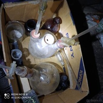 Cena: Dohodou. Nějaké sklo, kádinky až 1L, chemikálie především draselné a sodné soli (sírany, siřičitany...hydrosiran draselný, pyrosiřičitan draselný, síran železnatý) ještě Lachema Brno, Neratovice či Penta, ale i Francie a další zahranici. Různé nepoužité lakmusove papírky na měření pH, kotoucky CS vyroby. Tmavě láhve na chemikálie (prachovnice, s užším hrdlem na roztoky), dále 1Litrovky typ hnědá se šroubovacím uzávěrem od Penty (byl tam amoniakální pufr). Gumové zátky červenohnědé+Dělící nálevky více velikostí...Možnost dovozu Praha Brno a snad i JC kraj po domluvě. Na foto jen část zlomek toho co nabizim. Kahany na plyn (Bunsen, 2 velikosti) mám, lihové skleněné už nemam. Chemikálie (některá ještě v orig.baleni-zapecetene, např. Chlorid železitý P.A. čistota) prodám jen proti OP a studentům z oboru (chemické školy, slévárenství). Nepsat o fosfor - nemám! Bezne fotochemikalie (ustalovač) atd..prodám i bez této "byrokracie". Nebudu psát "levné", tyto věci už něco stojí v Lab.potrebach, či vám je
