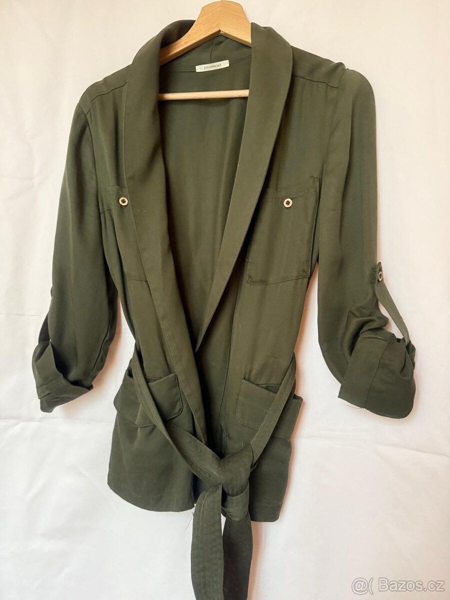 kabátek khaki jemný materiál vel 38