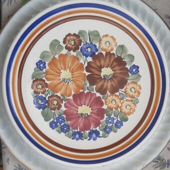 Cena: Nabídněte. Keramický velký talíř s motivem květin na pověšení, průměr 31 cm, signováno nabídky zasílejte písemně na mail pavelsvobod@seznam.cz
