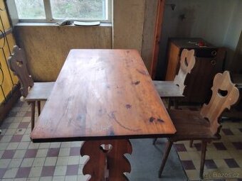 Prodám zachovalý stul masiv plus 3 židle d140/š 76/v77cm.cena 1500kc.Viz foto.723414048