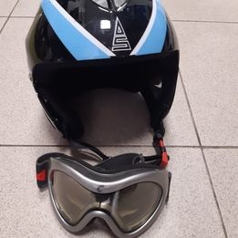Dětská helma SULOV s brýlemi velikost S. Chybí jedno polstrování u levého ucha, lze používat i bez něho. Jinak vše plně funkční.