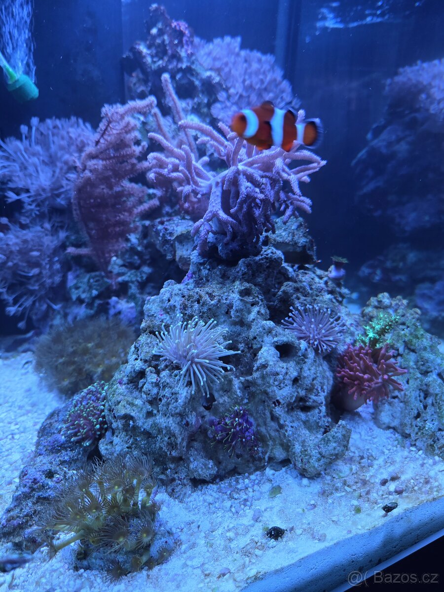Nabízím mořské akvárium 60x40x58, plno soft a par klaunu, sms odpovím
