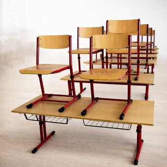 Cena: Dohodou. Komplet skolni Zidle s lavici dobry stav