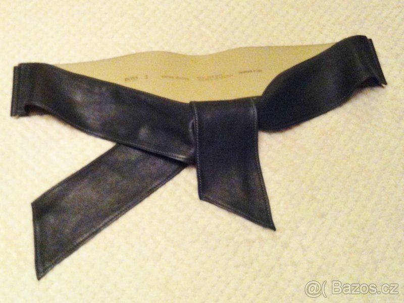 Nový černý pásek vázací, široký, krásná měkká kůže.