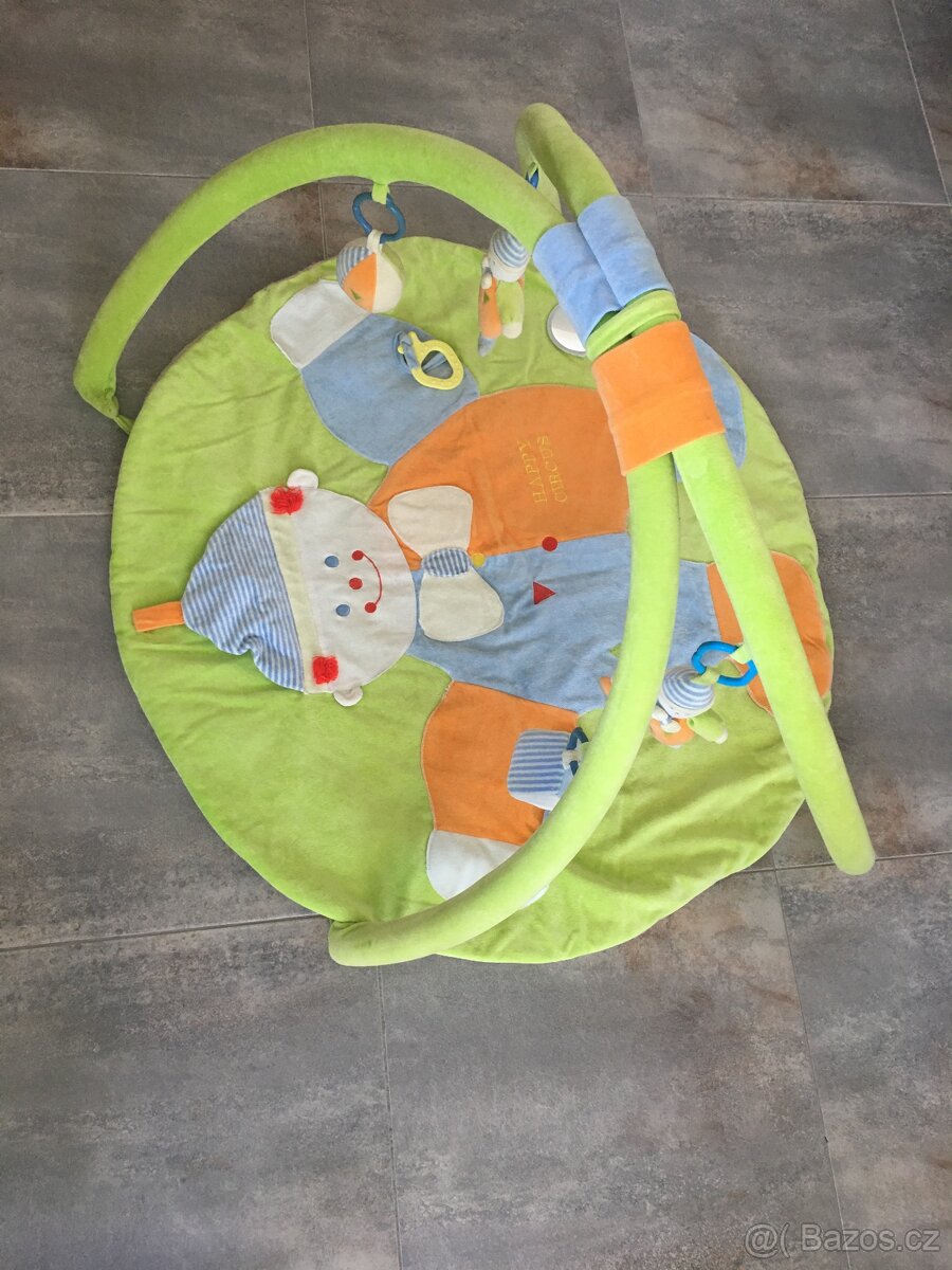 Dětská deka/podložka na hraní s hrazdičkou. Průměr 85 cm. Happy circus - jsou tam chrastítka, zrcátko, 2 klauni, kousací kroužek…