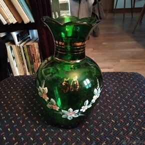 ,vaza zelena25cm 350kc,číše čirá křišťál 22*10cm 440kc,konvička 20*14cm top 1100kc,vše top dohoda vse krasne dohoda