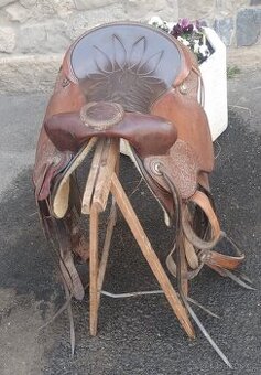 Sedlo je starší, ale stále v dobrém stavu. Třmeny nejsou původní (nyní třmeny ze sedlářství Siebert). Jeden vázací řemínek byl poškozen, vyměněn za jiný, ale je kratší než ostatní. Sedlo je těžké, má tvrdé posedlí. Nejsem první majitel. U nás bylo sedlo používané pouze na obsedání, kobyle je již bohužel úzké, jinak bych neprodávala. Sedlo svými rozměry je vhodné pro krátké koně s kohoutkem nebo mírným kohoutkem. Cena odpovídá kvalitě. Při rychlém jednání jsem ochotná o ceně jednat. Nebráním se ani výměně za jiné sedlo podobné kvality s možným doplatkem z obou stran. Trailové/Roper sedlo postavené na Ralide kostře imporotvané z USA, prošívané polstrované posedlí, květinové vzory. Rozměry sedla: celková délka cca 64 cm, rozměry mezi conchos cca 19 cm. Posedlí 16“.