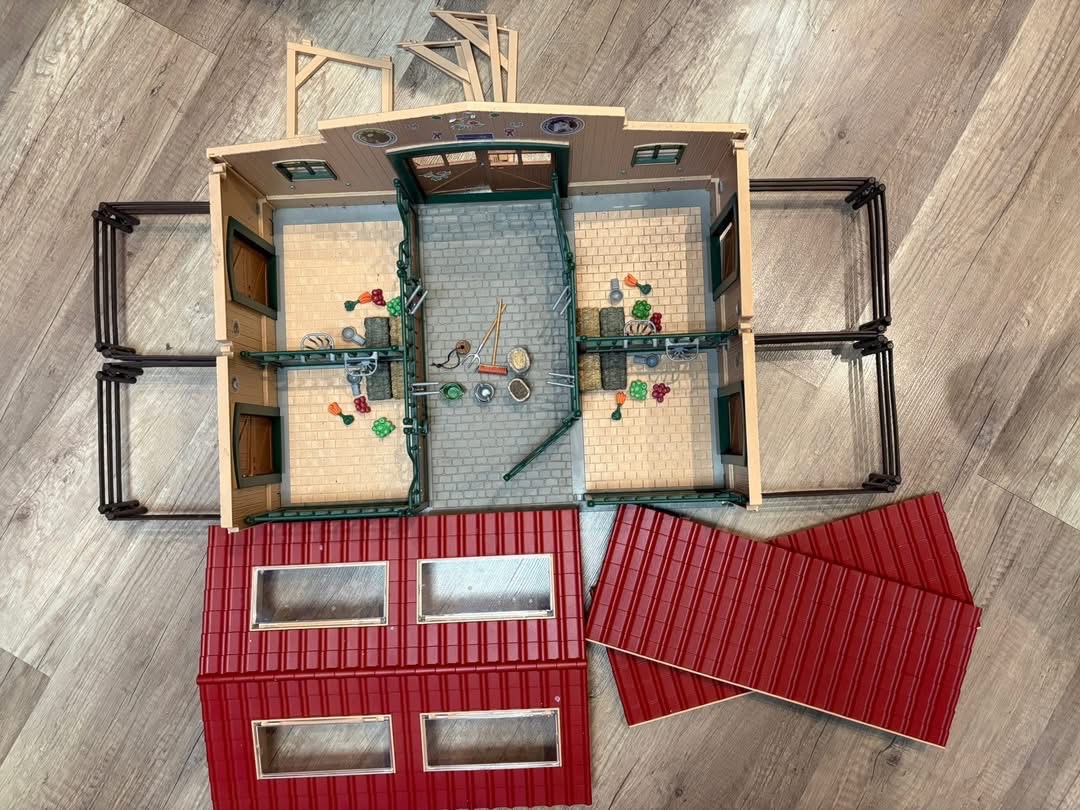 Prodám schleich stáj se vším na obrázcích. !Chybí jeden trám, z těch dvou větších. Ty 4 malé jsou všechny. Nemá to žádný vliv na funkčnost! Osobní předání Ostrava nebo zašlu balíkovnou