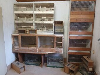 Ruším chov,proto prodam veškeré chovatelské vybavení. Menší bílé klece vhodné pro kanáry,chůvičky,holoubky,celkem 6ks. Jsou vždy v kuse 3 nad sebou. Vyjímatelne šupliky-nesou známky používání,obcas jsou díry,měla jsem na tom lepenku.Vetší klece vpravo jaou nové-4ks,vyjimatelne šuplíky z plechu,pak 2 kusy větších dřevěných klecí pro andulky. Dále drátěné zelene klece,přepravky,misky,krmitka,hnizda,budky,bidýlka. Preferuji prodej vcelku,voliera možno zvlášt Venkovni velkou volieru daruji ( bez polykarbon.střechy),je potřeba ji natřít, jsou k tomu budky pro korely,andulky nebo kakariky Platí do smazání