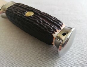 Nabízím překrásnou loveckou dýku Mikov. Tato dýka má záštitu i patku z leštěného NEREZU a tak je mnohem kvalitnější než předchůdci z hliníku. V patce je navíc otvor pro pojistnou šňůru, který na starších sourozencích také chyběl. V nabídce pouze dýka bez pouzdra. Nepoužitý nebroušený kus. Parametry: Délka celková: 21,3 cm Délka čepele: 10,5 cm Výška čepele max.: 2,7 cm Odeslání poštou nebo zásilkovnou. Platba předem, nebo dobírkou (poštovné předem na účet)